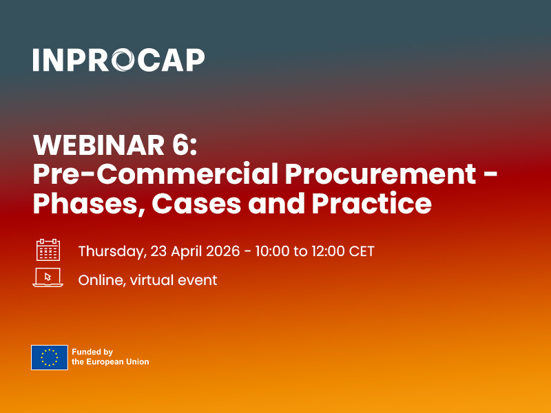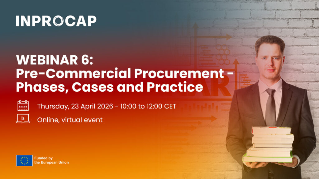 The INPROCAP project is building the skills and tools needed for all actors in the Big Science ecosystem to succeed. The sixth webinar, titled “Pre-Commercial Procurement – Phases, Cases and Practice”, is part of the INPROCAP Webinar Series (October 2025-December 2026).